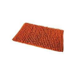 Alfombra 100% algodón. Base antideslizante latex-sprayed. Bolsa guardapolvo y percha con solapa. Cortina baño PVC. 12 ollaos acrílico en cabecilla reforzada. Anillas incluidas. Bolsa y percha con solapa. 3. Jumbo naranja. Alfombra 40x60 cm.
