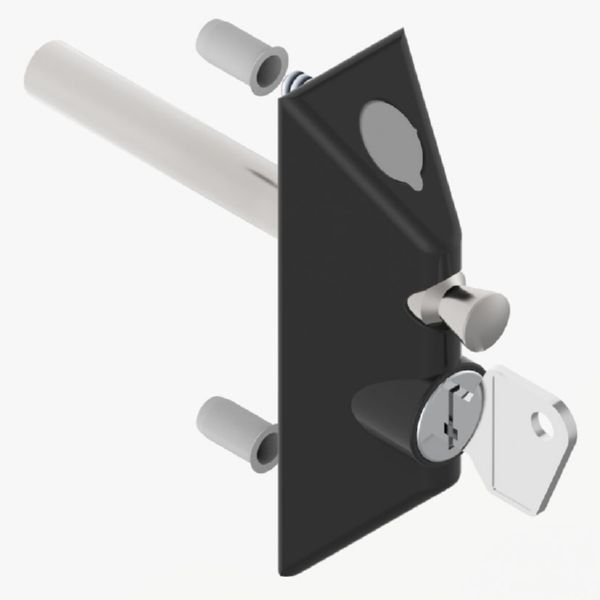 Carcasa de zamak, eje y tornillos inoxidables. Bloqueo con llave para puerta corredera. 2 llaves. Negro.