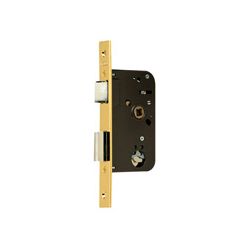 Golpe y llave, reversible. Cilindro redondo. Llave estriada. Frente latonado. Entrada 55 mm