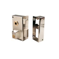Niquelada. Golpe y llave estriada, (golpe accionado por manubrio). Cilindro perfil. Izquierda. 60 mm