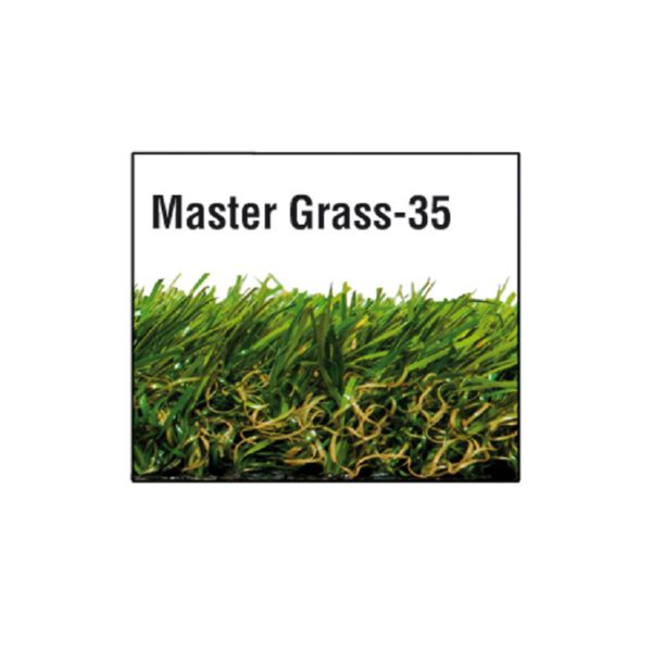 Espesor 35 mm. Suave, resistente, alta durabilidad y densidad. Efecto natural 4 tonos de color. Hilo rizado de sustento y amortiguación. Fabricado en polietileno y látex. Fibras con efecto memoria. Resistente a los rayos U.V. Rollo 2x5 m.