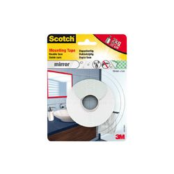 Tecnología VHB Especial espejos. Fijación para ambientes húmedos. Confortable. Infundido con adhesivos acrílico. Resistencia 2 kg/30 cm. Temperaturas de -30º a 104º C. 19 mm. x 1,5 m.