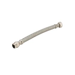 (latiguillo). Tubo caucho sintético, trenzado con hilos de acero inoxidable. Racor latón niquelado Ø 13 mm. H-H. 1/2. 40 cm.