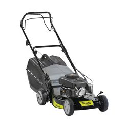 Motor Alpina RS-100 OHV. Autopropulsado. Potencia: 100 cc. Ancho corte: 46 cm. Altura corte: 27-80 cm. Chasis: Acero. Plataforma FL Recogedor plástico: 55 l. Ruedas: Ø 180/180 mm.