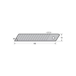Cuchilla ancho 18 mm. con 15 segmentos de corte. 10 cuchillas. Envase dispensador.
