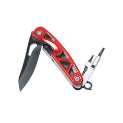 5 funciones. Cuerpo aluminio anodizado. Navaja acero inox 420. Incluye 2 LEDs en los extremos del mango (iluminación frontal de navaja y destornilladores). Funda nilón adaptable al cinturón. Medida abierto: 180 mm y cerrado: 104 mm. Funciona con 2 pilas de botón CR1616 (incluidas). Hoja navaja 8 cm Punta reversible boca plana Punta reversible Phlilips Llavero 2 LED iluminación
