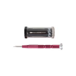 Mango destornillador aluminio anodizado de 110 mm. 6 puntas doble boca 3x36 mm. acero 8660. Composición: Plana 1,0 mm x Phillips Nº0000 Plana 1,5 mm x Phillips Nº000 Plana 2,0 mm x Phillips Nº00 Plana 2,5 mm x Phillips Nº 0 T5 x T8 T6 x T9