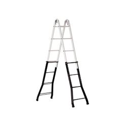 Acero. Multiposiciones telescópica. Sistema cierre rápido. Largo según posiciones: Recta 3,48 m, doble 1,62 m. Acero-aluminio 14 peldaños.