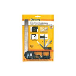 Graduable de 0º-180º. 3 burbujas nivel, mediador de ángulos y punta trazadora. 18 cm.