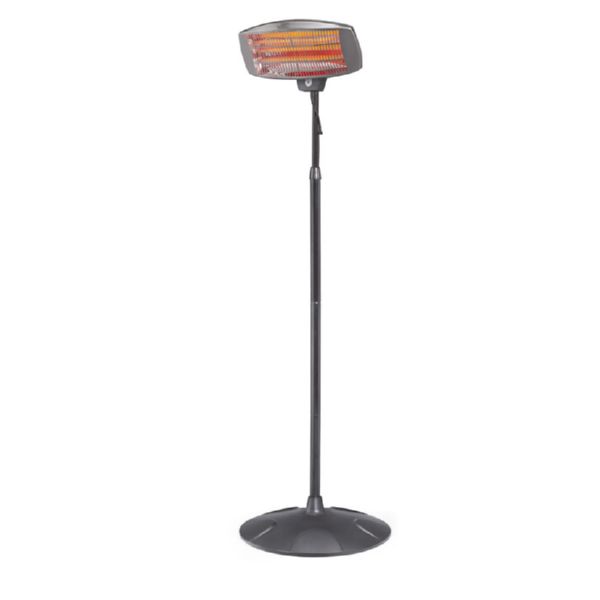 Altura regulable 180-200 cm. Ø base 45 cm. Cable eléctrico 2 m. Incluye sistema de anclaje a la pared. 3 potencias: 650/1350/2000 W.