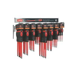 Expositor 90 unidades. Varillas acero cromo-vanadio-molibdeno. Punta magnética pavonada. Mango bimaterial de geometría triangular. Homologado VDE. EXPOSITOR DESTORNILLADOR.Nº3 RATIO