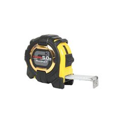 Gancho magnético reforzado. Caja polipropileno con recubrimiento de elastómero antideslizante. Cinta acero esmaltado blanco con revestimiento antireflejos. Clip de sujeción y botón de bloqueo. Homologado CE, clase de precisión II. 5 m. Cinta 27 mm.