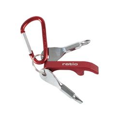 Mosquetón y descapsulador de botellas en aluminio anodizado. 2 puntas de atornillado cromo-vanadio. Plana : 5 mm. Phillips : Nº 2