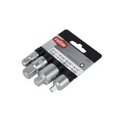 1/4 + 3/8 + 1/2. Reductores/ampliadores de llaves de vaso. Acero cromo-vanadio, acabado satinado. Composición: Reductor. 1/2 a 3/8 Reductor. 3/8 a 1/4 Ampliador. 3/8 a 1/2 Ampliador. 1/4 a 3/8