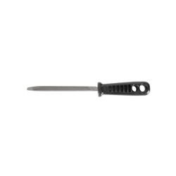 Mango plástico. Cuerpo forjado en acero al cromo. Tratamiento de templado integral. Media caña. Entrefina 4