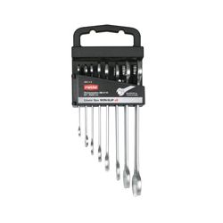 Juego 8 piezas. Boca sistema Non-Slip con 4 puntos de contacto: evitan el redondeo de la tuerca y el deslizamiento. Cromo-vanadio con trata- miento térmico para mayor resistencia. DIN 3110. Presentadas en soporte plástico. 6x7 - 20x22 mm.