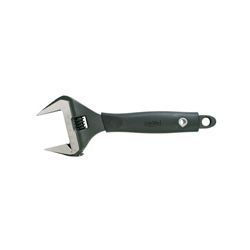 Acero Cromo vanadio, acabado industrial fosfatado negro. Escala milimétrica. Llave más delgada que una llave standard. Mango ergonómico antideslizante. Toda la pieza con tratamiento térmico. Ajuste perfecto de la moleta con la cabeza. 8-200 mm. Abertura bocas: 0-38 mm. Tuercas M1-M24