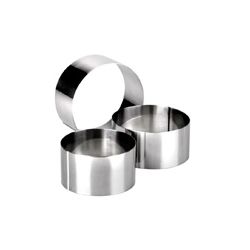 Acero inoxidable pulido. Redondo. h. 4,5 cm. Juego 3 unid.: Ø 8 - 9 - 10 cm.