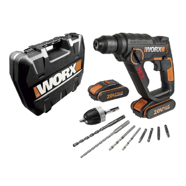 20 V. Baterías 2x2 Ah. 0-900 rpm. 0-4.800 ipm. 1,2 Julios. Cargador rápido 1 h. Maletín transporte con accesorios.