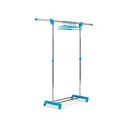 Estructura de acero con acabados en resina plástica. Barra-perchero 140 cm. con 6 perchas plásticas. 147x43xh.172 cm.