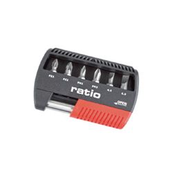 Estuche 7 accesorios. Puntas acero cromo-vanadio S2. 1 adaptador inox 1/4 x 60 mm. 6 puntas 1/4 x 25 mm: Phillips: Nº 1-2 Pozidriv: Nº 1-2 Planas: 4,5-6,5 mm.