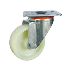 Pletina giratoria cincada. Aro monobloque de nilón inyectado. Buje con taladro liso. Ø 100 mm.