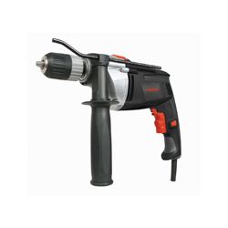 Electrónico reversible. Portabrocas automático 13 mm. Empuñadura bimaterial. Maletín de transporte con 12 accesorios, empuñadura auxiliar y tope de profundidad. Potencia: 810 W. rpm: 0-2600 ipm: 0-44800 Taladro máx. madera: 32 mm. Taladro máx. acero: 13 mm. Taladro máx. hormigón 13 mm. Peso 2,3 kg.