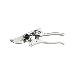 Corte deslizante (ByPass). Hojas forjadas de alta calidad 65CRM afiladas en ambos lado para corte limpio y sin esfuerzo. Mangos ergonómicos fundición de aluminio satinado. Perno central autoblocante. Cierre de seguridad. Muelle y amortiguación de goma. Ø corte 10 mm. Longitud 21,2 cm.