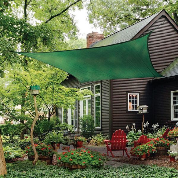 Tejido HDPE antirasgaduras y antimoho. Insensible a rayos UV. mp se decpñprañ Anillas de acero inox y cuerdas incluidas. Triangular. 5x5x5 m. Verde.