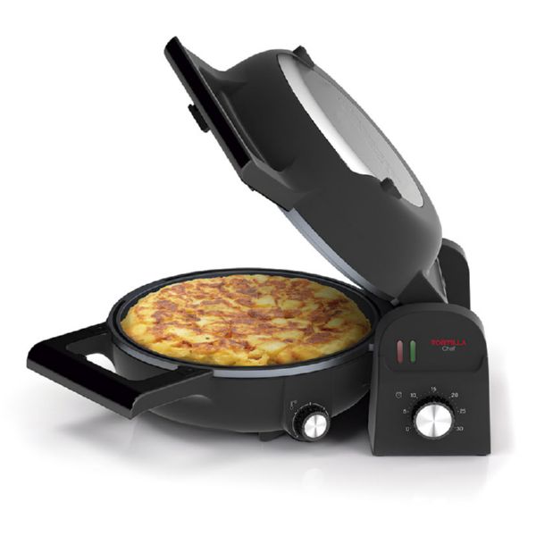 Interior antiadherente Ø 30,5 cm. Tapa cierre de seguridad y temporizador regulable. Almacenamiento vertical/horizontal. 1.300 W.